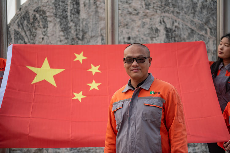 今天,我們在這里舉行隆重的升旗授徽儀式,熱力慶祝中華人民共和國成立71周年。71年前,第一面五星紅旗在天安門廣場冉冉升起,毛澤東主席莊嚴(yán)地向世界宣告了中華人民共和國的成立,中國歷史開始了新的紀(jì)元。